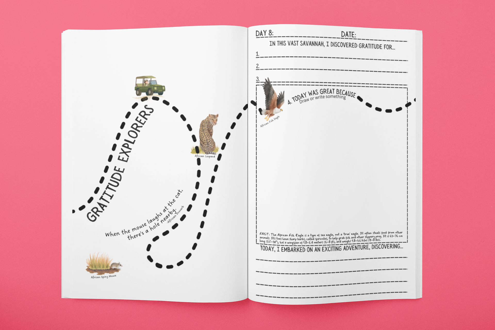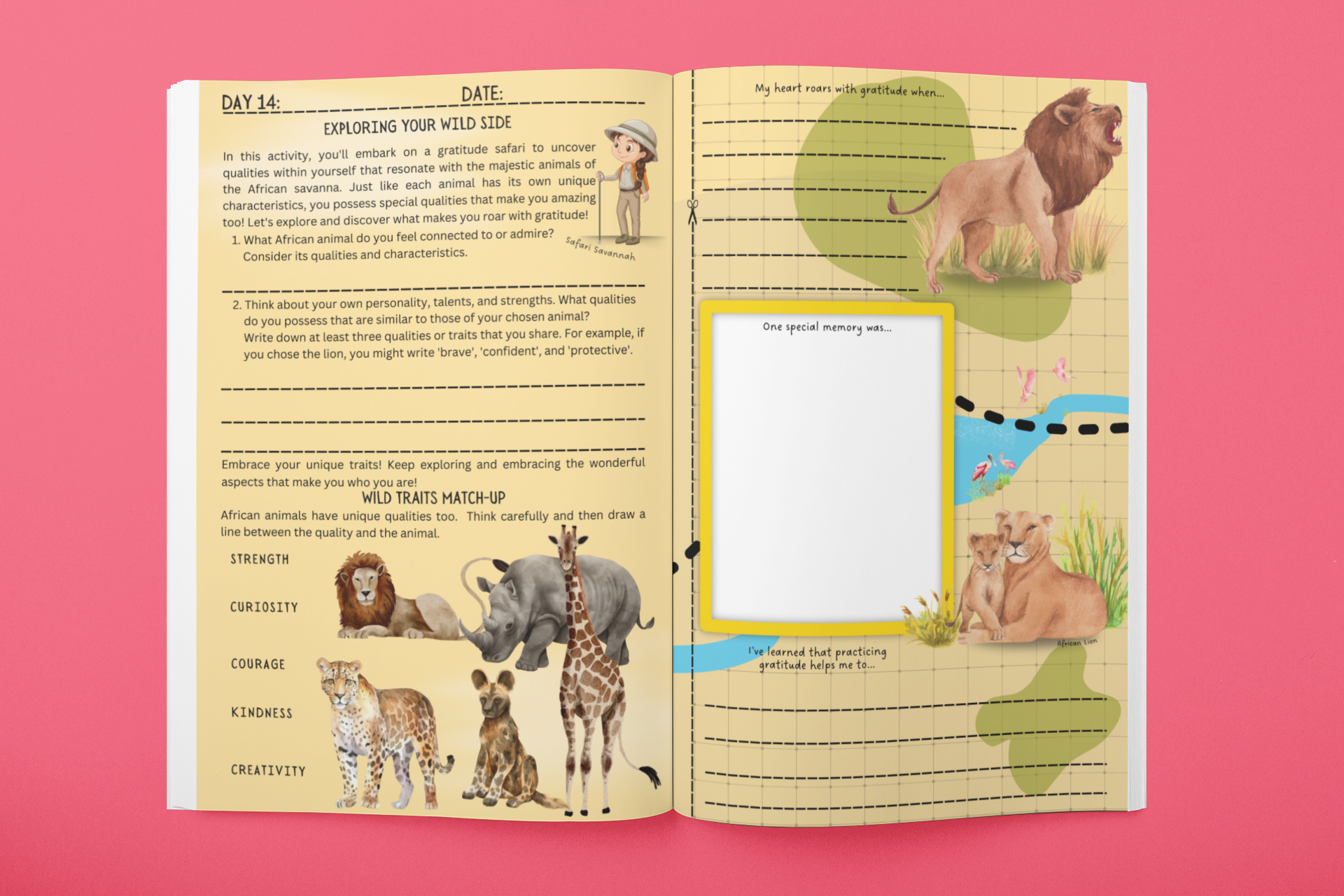 A fun safari themed gratitude journal to teach children mindfulness & practice gratitude.
